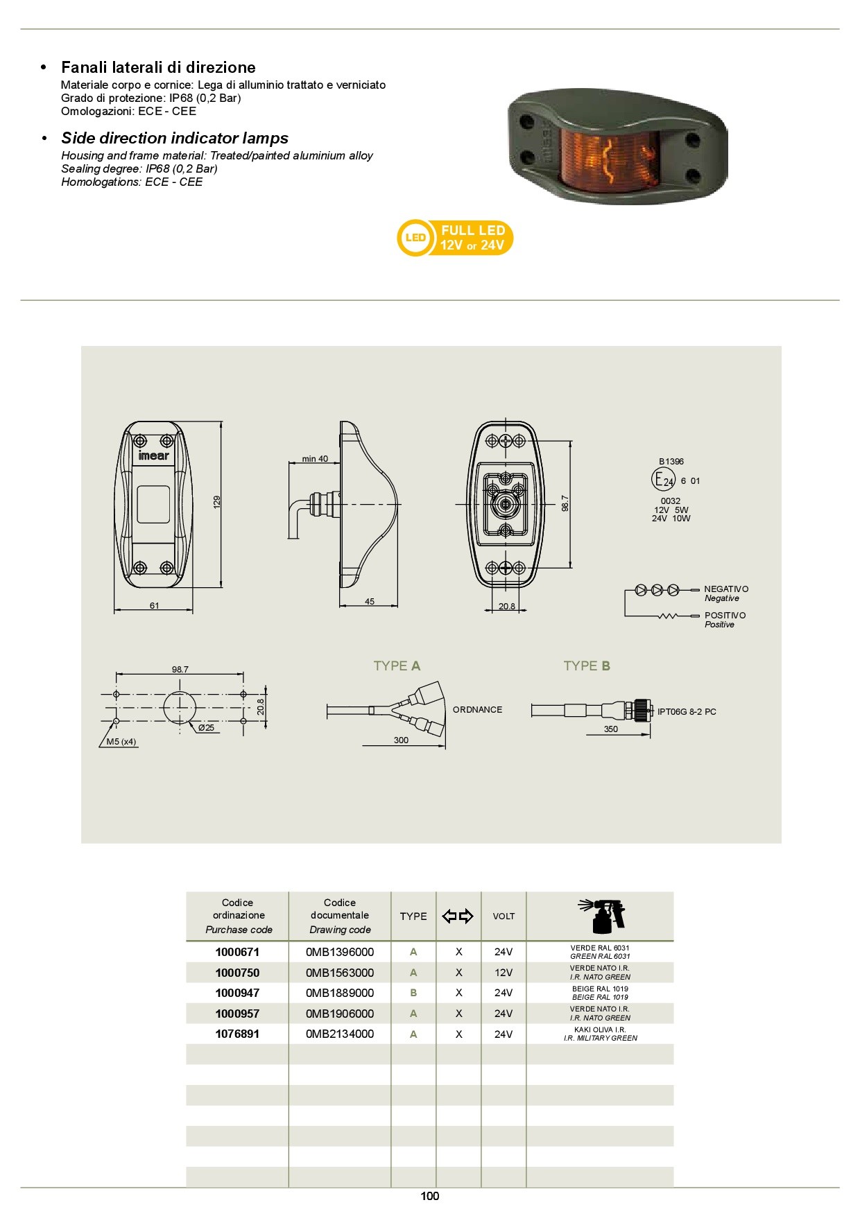 -COD.DOCUMENTALE 0MB1906000, Codice ORDINAZIONE 1000957, type A, direzione, volt 24V, colore VERDE NATO I.R.
