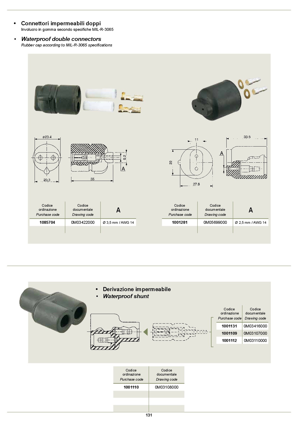 CODICE DOCUMENTALE 0M03107000, CODICE ORDINAZIONE 1001109