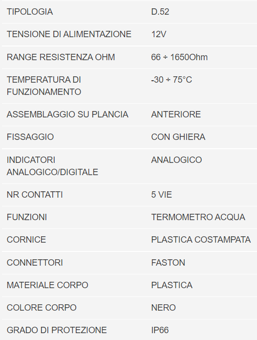 TERMOMETRO ACQUA 12V IR UNIDECK